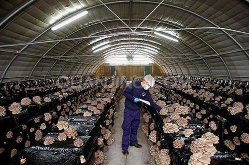 喷化肥液。用0.1%--0.2%的尿素液,每隔2--3天喷一次,以喷湿床面为宜。对中后期出菇的子实体有增肥变厚的效果,也可用过磷酸钙0.5公斤加水15公斤溶解后取滤汁,再加碳铵50克喷打在床面上,可使菇体肥厚,增产15%--20%。